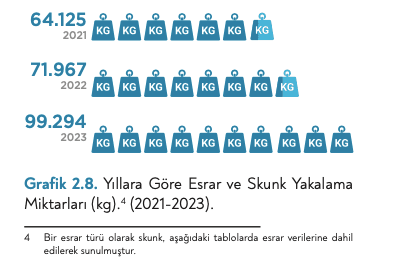 2024 Türkiye Uyuşturucu Raporu’na göre, esrar uyuşturucuya bağlı yakalanmalarda en sık rastlanan maddedir.